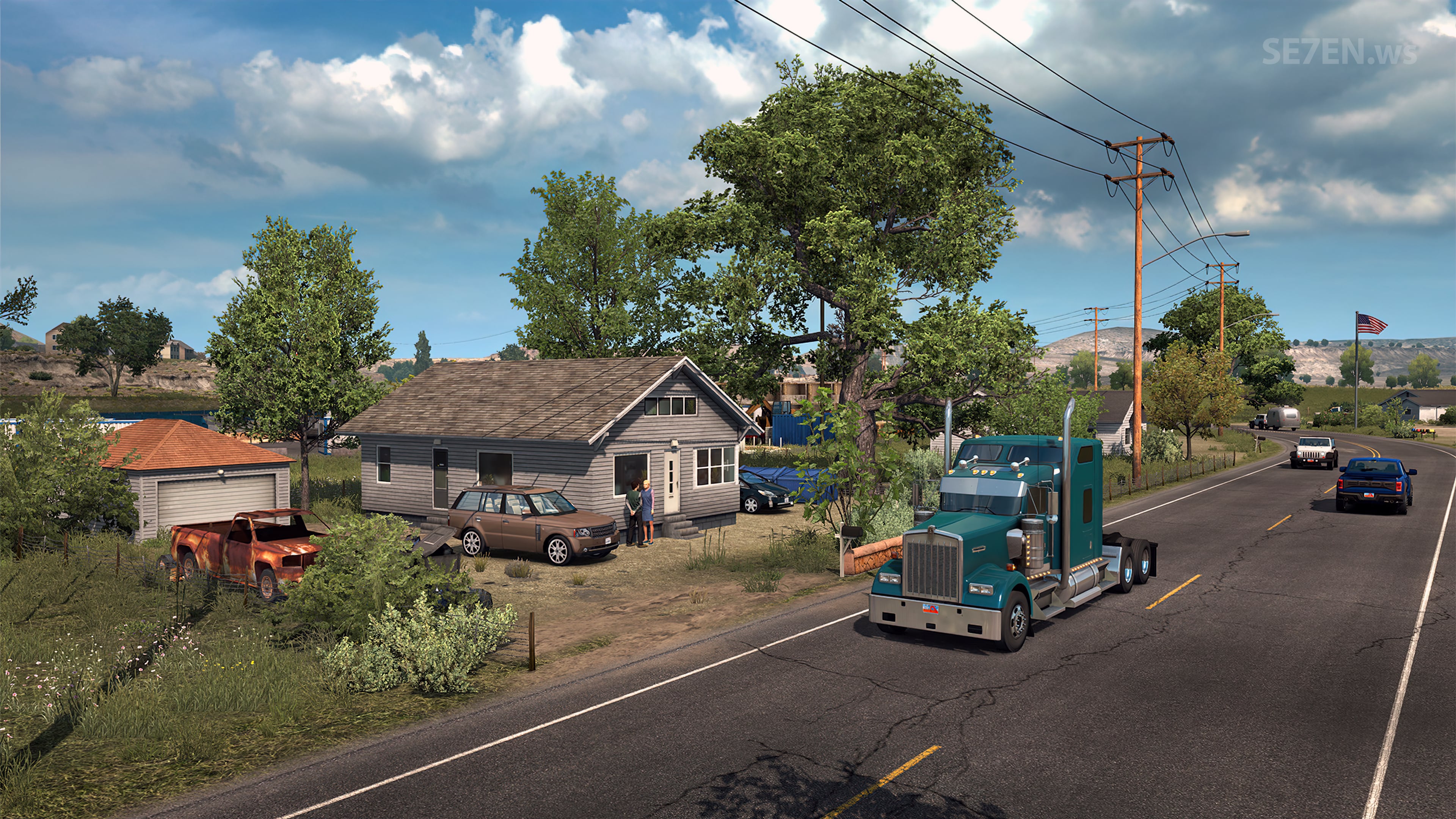 + Атмосфера лучше передает романтику больших дорог, огромные пустынные пространства и грузовики как полноценные дома на колесах, а не сплющенные европейские версии тягачей.