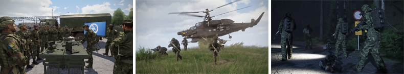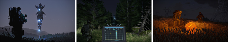 В ответ на первый контакт также появятся различные новые игровые ресурсы, которые более тесно связаны с темой одиночной кампании Arma 3 Contact. Они могут иметь скриптовый игровой функционал в рамках кампании, но будут по-прежнему доступны игрокам и создателям контента в качестве косметических предметов для использования в песочнице Arma 3 (например, многопользовательском режиме и редакторе сценариев). Возможно, самым ярким из этих дополнений является снаряжение, связанное с защитой CBRN, состоящее из верхней одежды, лицевых масок и рюкзаков для дыхательных аппаратов.
