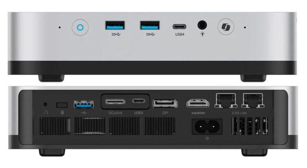 Cuenta con tres ranuras M.2 2280 para almacenamiento basado en unidades de estado sólido y doble slot SO-DIMM para equipar memorias RAM DDR5-5600. y amplias opciones de conectividad donde destacan los puertos USB4 o un Oculink que le permite manejar gráficas dedicadas externas si las necesitas para juegos:
