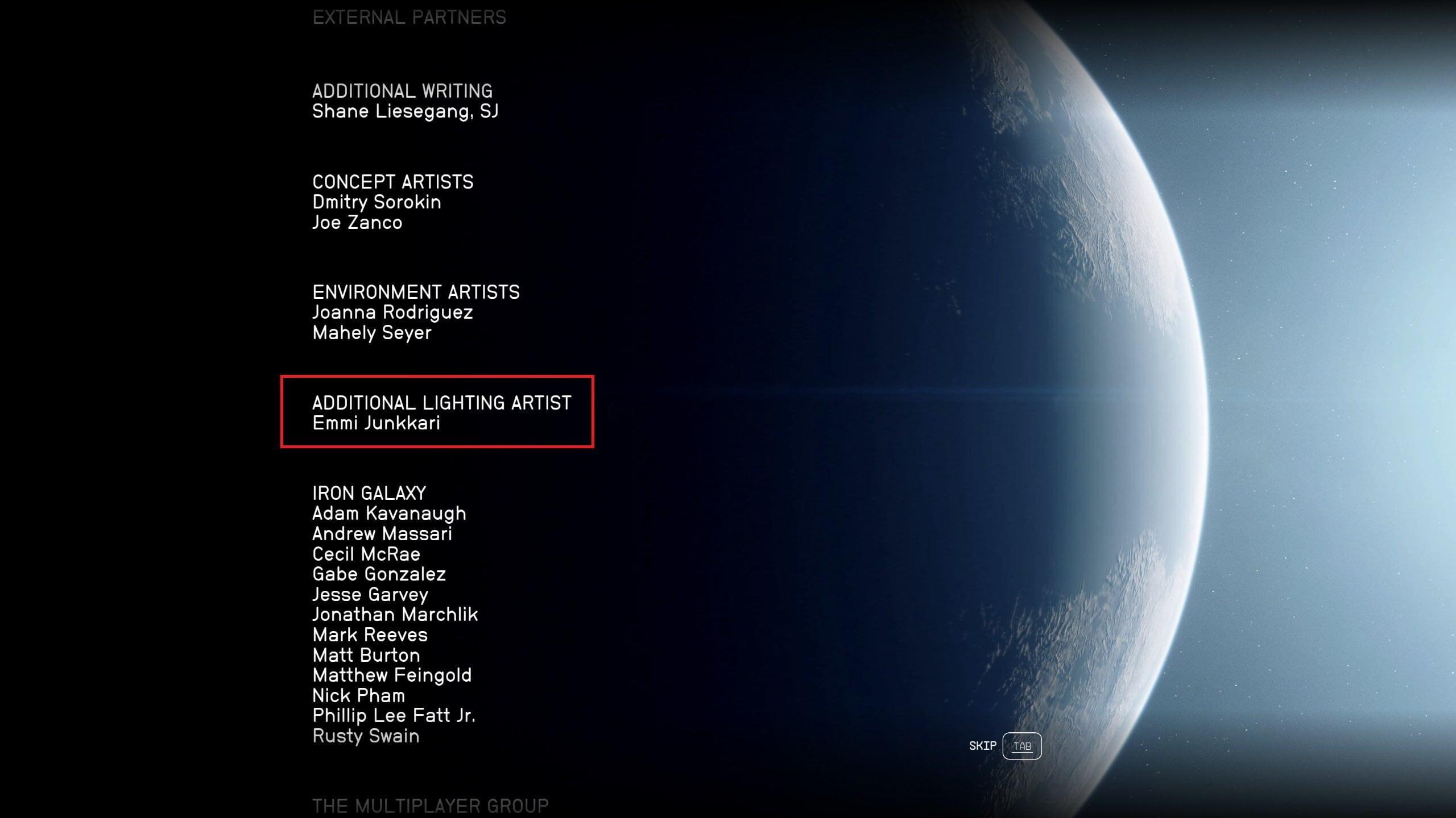 После того, как на её посты в соцсетях обратили внимание крупные СМИ вроде Eurogamer, Юнккари отметила, что была лишь одним из множества художников по объектам, трудившихся над Starfield. Поэтому она «не хочет присваивать себе их заслуги, ведь ответственна лишь за небольшую часть окружения в игре».