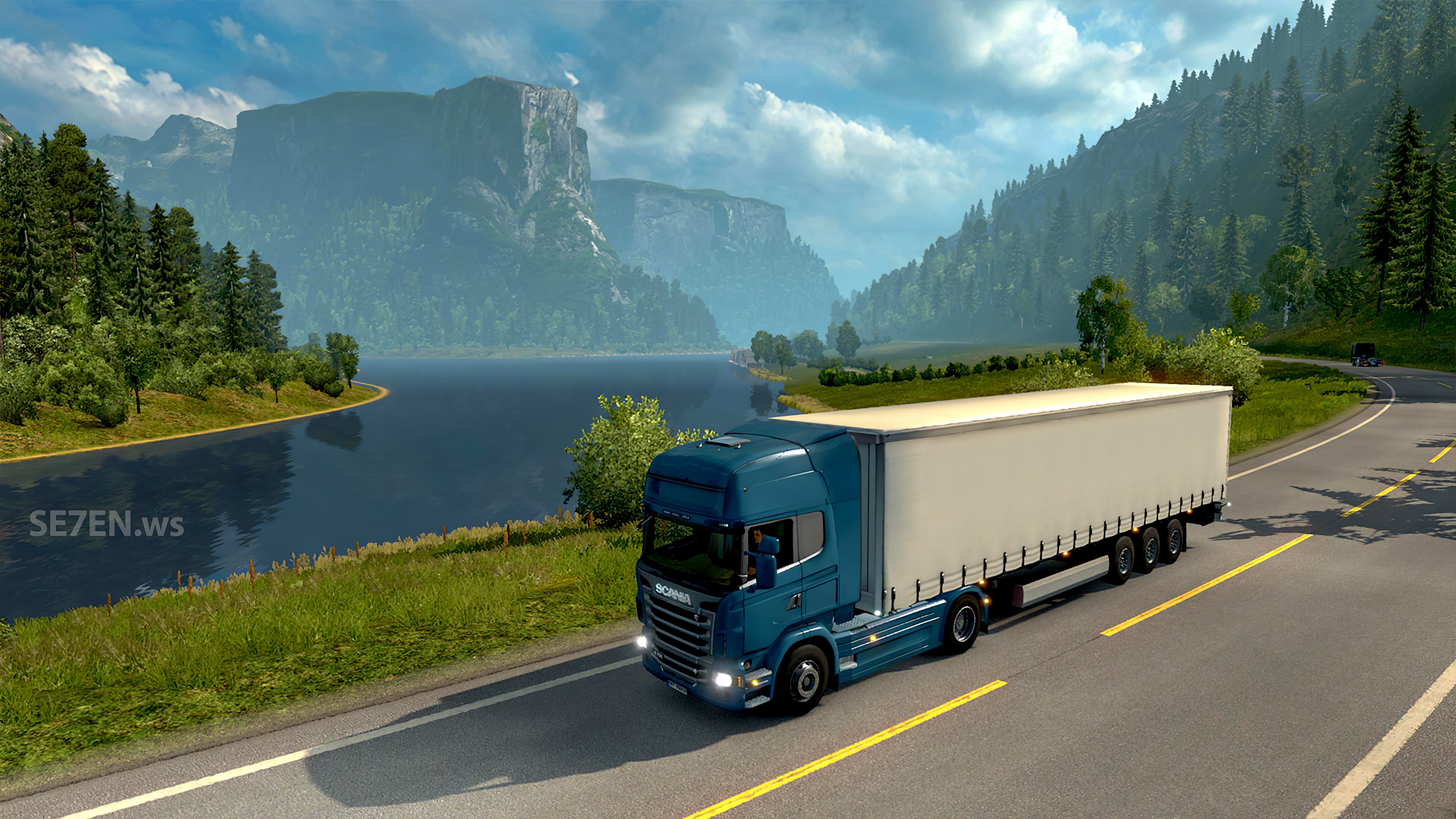 Иногда очень приятно во время долгого пути, когда ни единой машины, встретить на встречной полосе такого же дальнобойщика как и ты, и просто побибикать ему). На данный момент лучший симулятор дальнобойщика. Спасибо SCS Software.