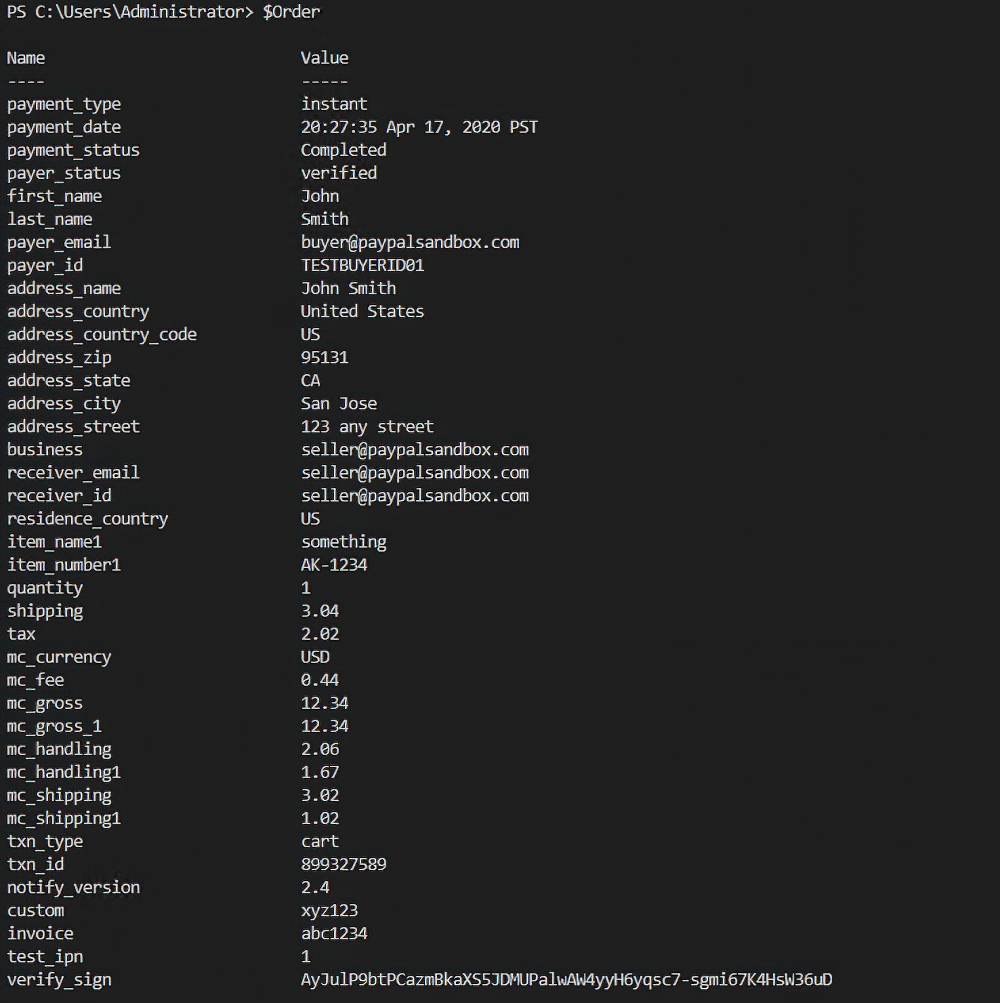 Вот и все, что требовалось от нашего листенера. Получить данные от PayPal и записать в файл.