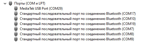 Однако после того, как напряжение на АКБ выросло до 3.4-3.5В (что достаточно для старта анимации зарядки АКБ), девайс продолжал висеть всё на том-же потреблении. И вот здесь я понял что да, дело действительно может быть в eMMC! Я зашёл в диспетчер устройств, подключил смартфон к ПК и увидел свою любимую надпись — MediaTek USB Port.