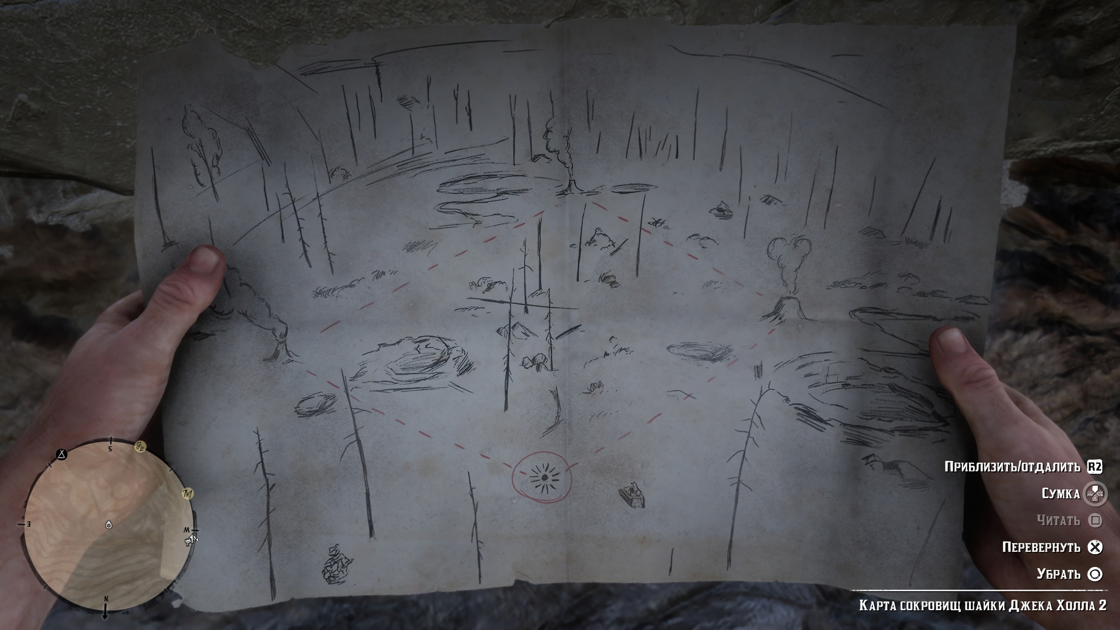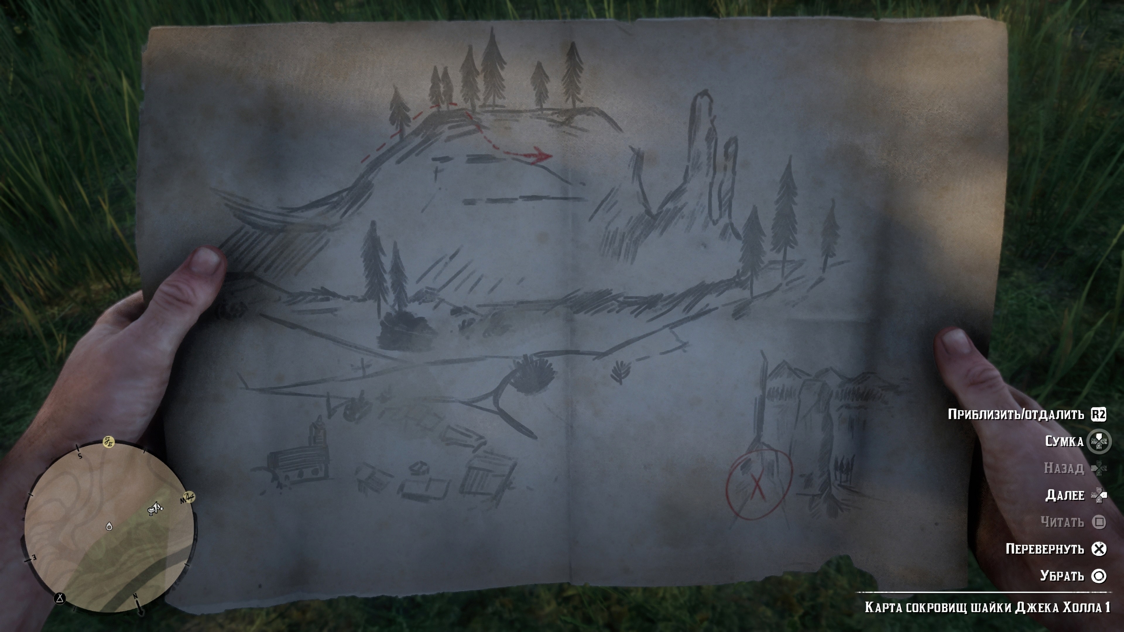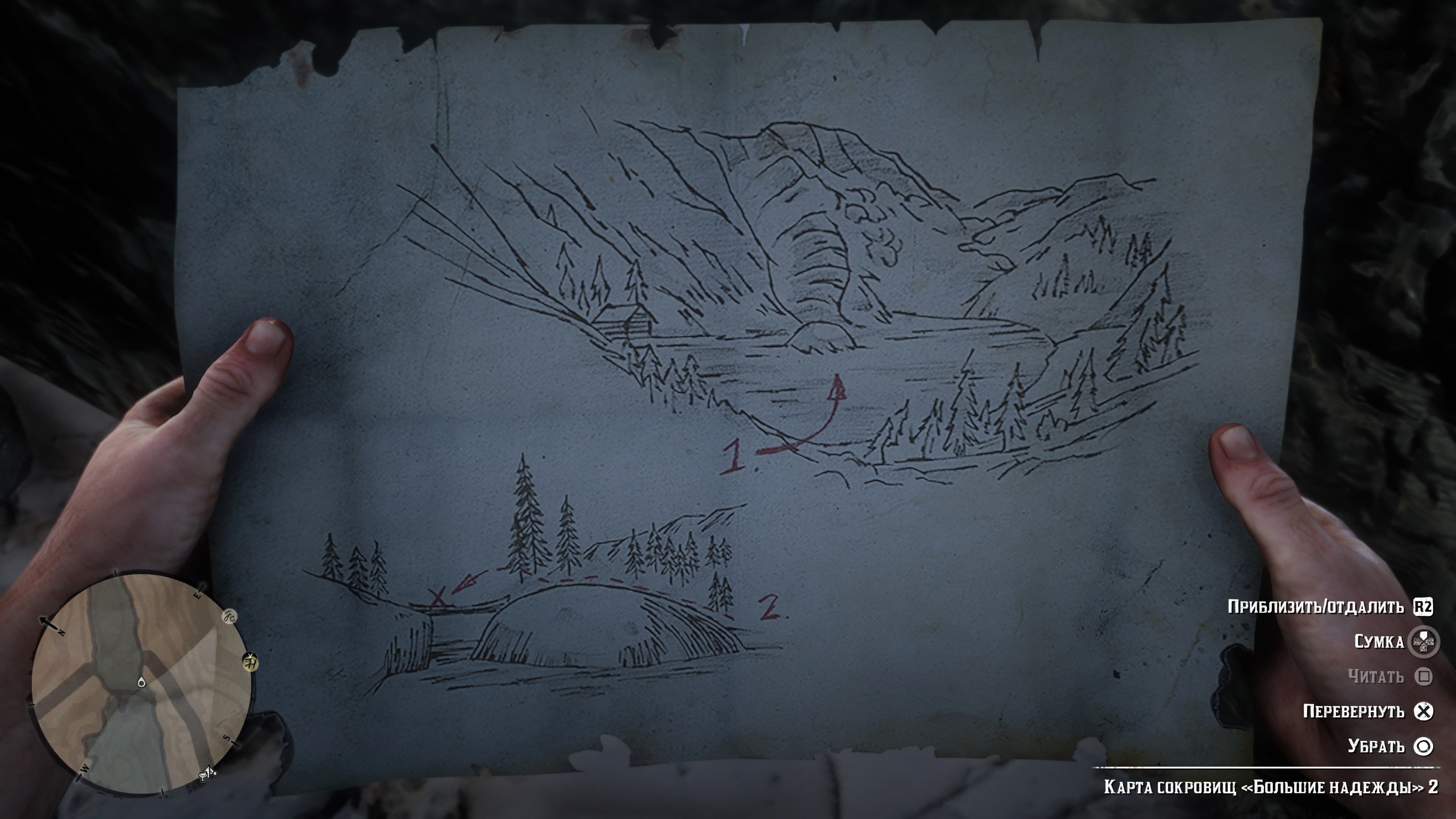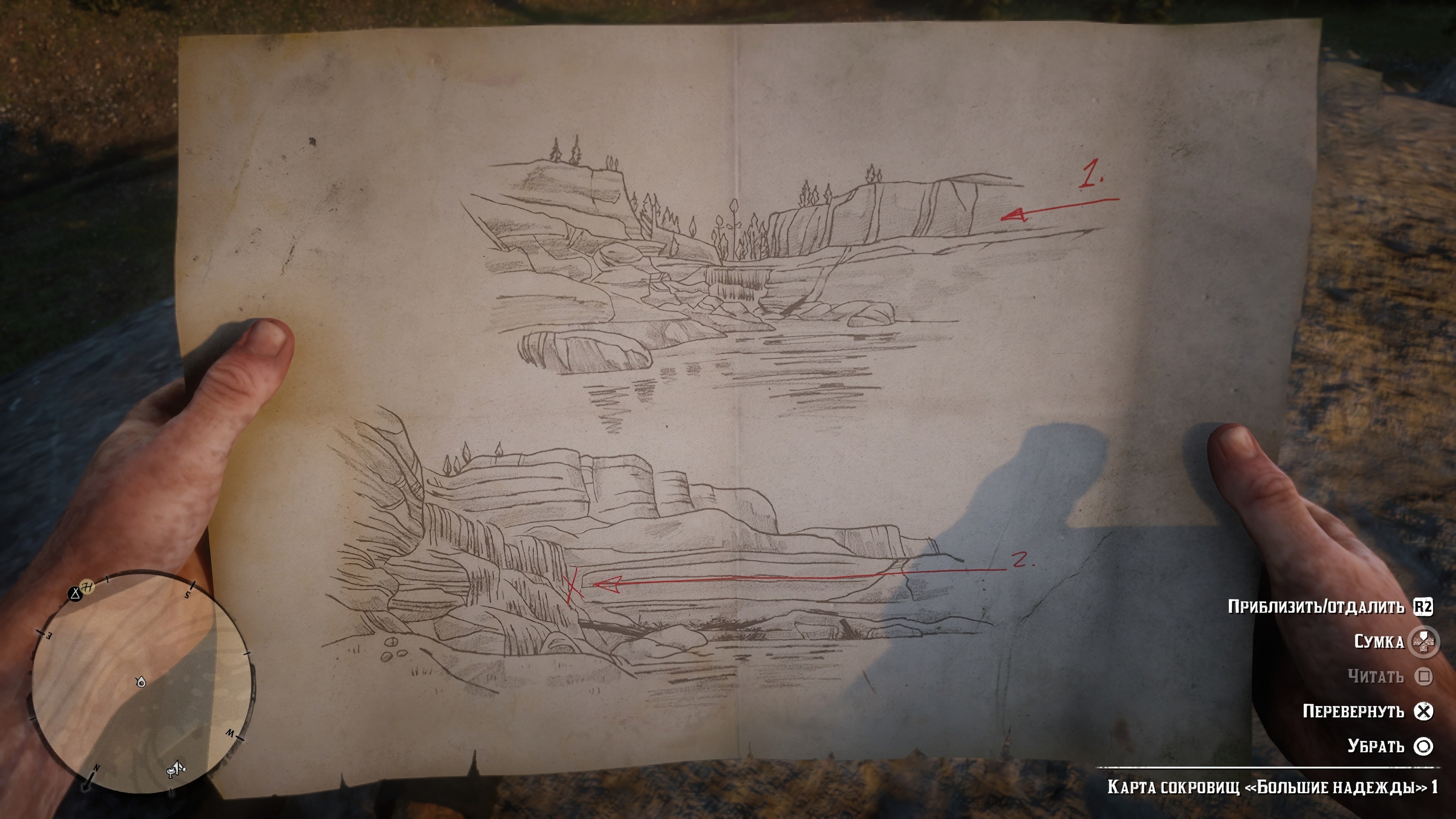 Первую половину карты можно найти в хижине отшельника, расположенной к западу от Валентайна. Отшельники не отдадут свою территорию без боя, так что будьте готовы. Карта находится в прикроватной тумбочке внутри деревянной хижины.