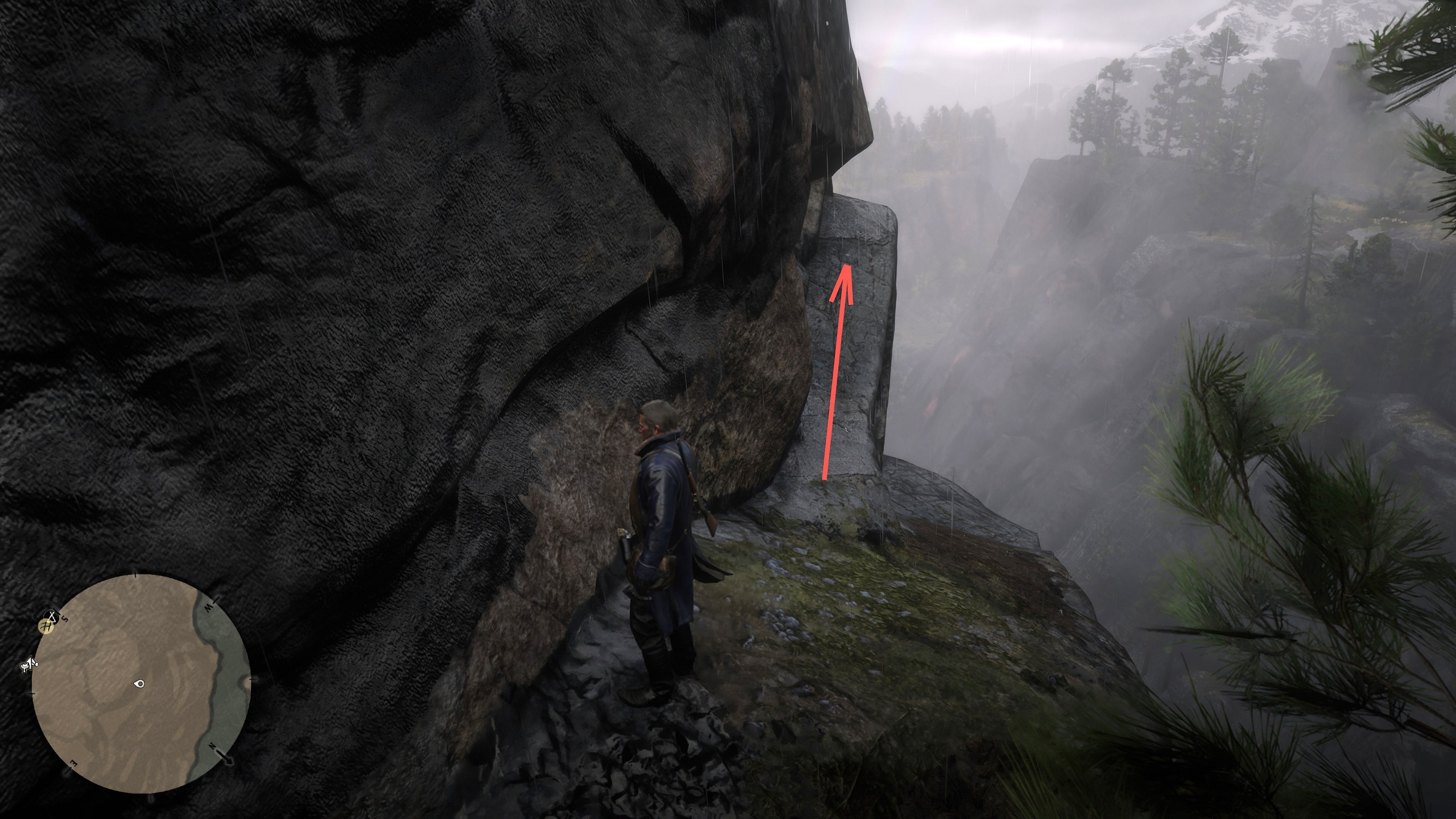 Поднимитесь почти на вершину горы и спуститесь между двумя соснами к небольшому выступу. Идите вперед, пока трава под вами не закончится. Если вы спуститесь вниз, то увидите наскальный рисунок. Следуйте за сокровищами вверх по узкому каменному уступу.