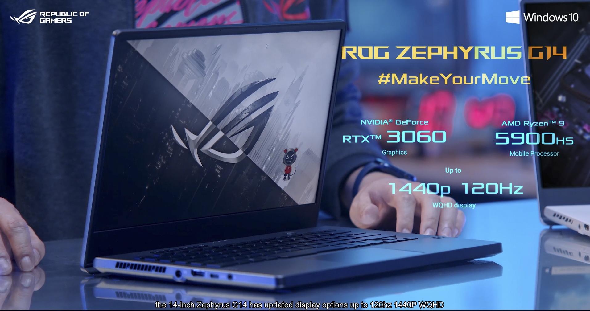 Вторая модель, ROG Zephyrus G14, изменилась только внутри. Теперь за производительность компактного 14-дюймового игрового ноутбука отвечает процессор AMD Ryzen 9 5900HS и мобильная графика NVIDIA GeForce RTX 3060 для ноутбуков. Также у ноутбука появился виртуальный питомец Omni, которого можно увидеть на рабочем столе.