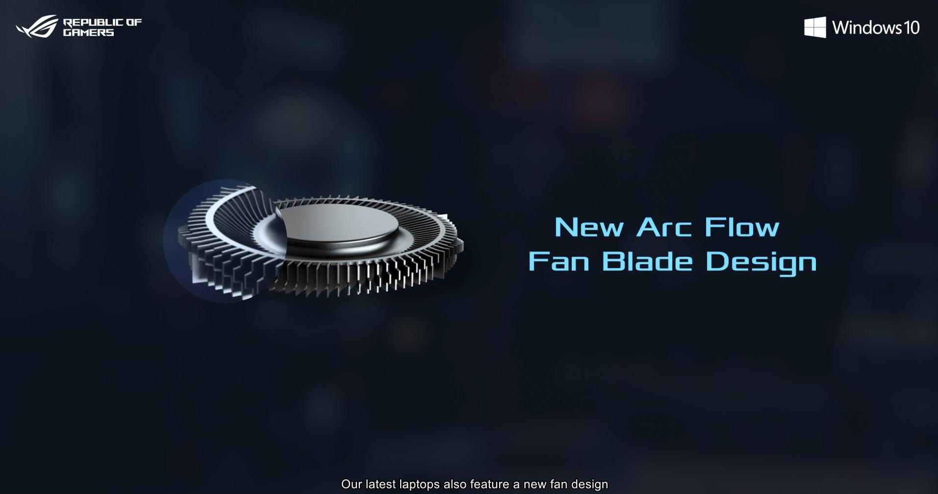 В 2021 году мы изменили конструкцию систем охлаждения игровых ноутбуков ROG для большей эффективности. На внешней части вентиляторов появились дополнительные небольшие лопасти, расположенные в виде волны. Благодаря им удалось увеличить эффективность работы вентилятора, и снизить турбулентность воздушных потоков. В результате шум от систем охлаждения снизился с 45 до 40 дБ.