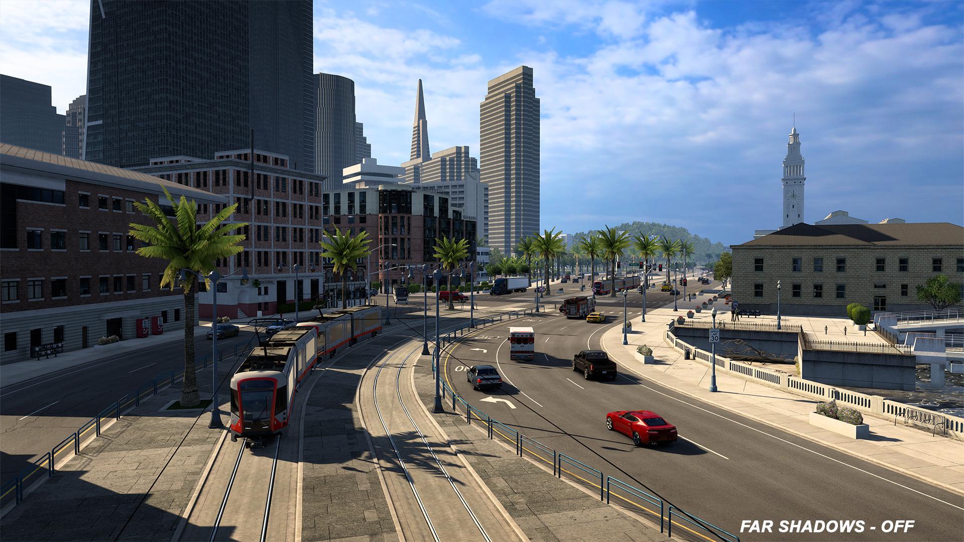 - Дальние тени: постоянные тени от удаленных крупных объектов, таких как фабричные цеха, небоскребы и эстакады, с возможностью отключить их в меню «Параметры».