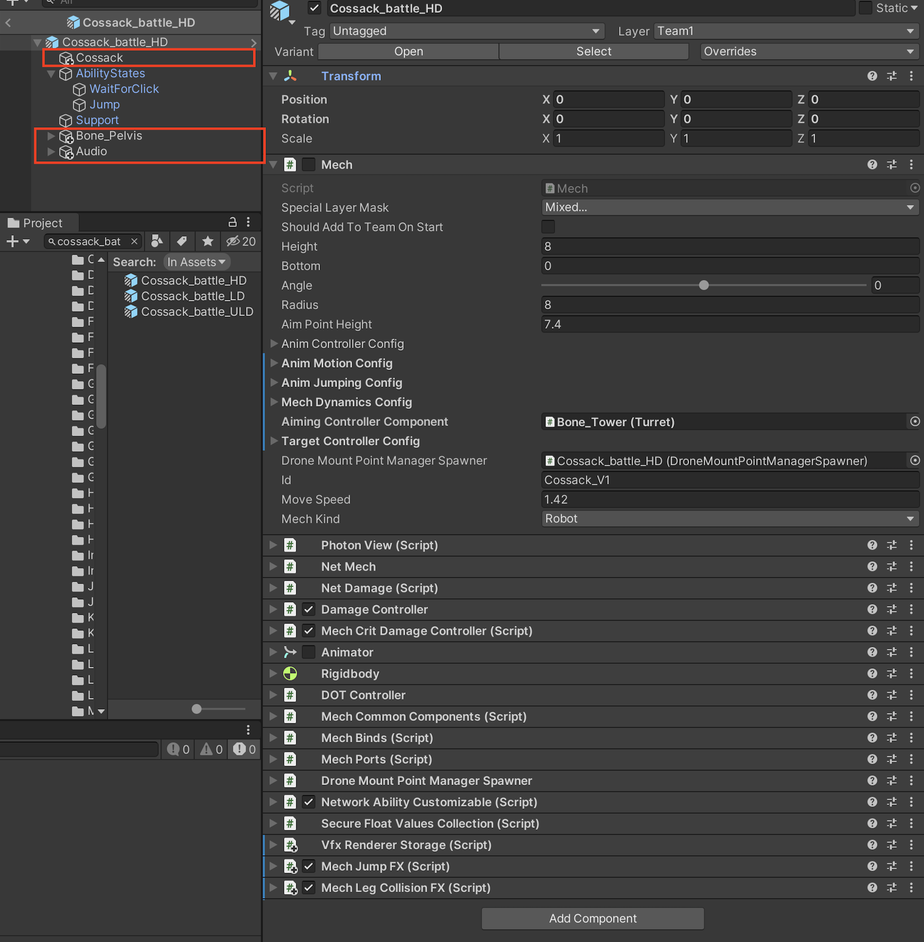 Как уже упоминалось ранее, создание нового префаба робота в War Robots может занимать от 1 до 3 дней работы геймдизайнера — и это очень много, когда дело касается более 80 префабов роботов. Однако, благодаря общей базе и префаб-вариантам нам уже не нужно было создавать робота целиком — необходимо было лишь заменить ему визуальные компоненты.