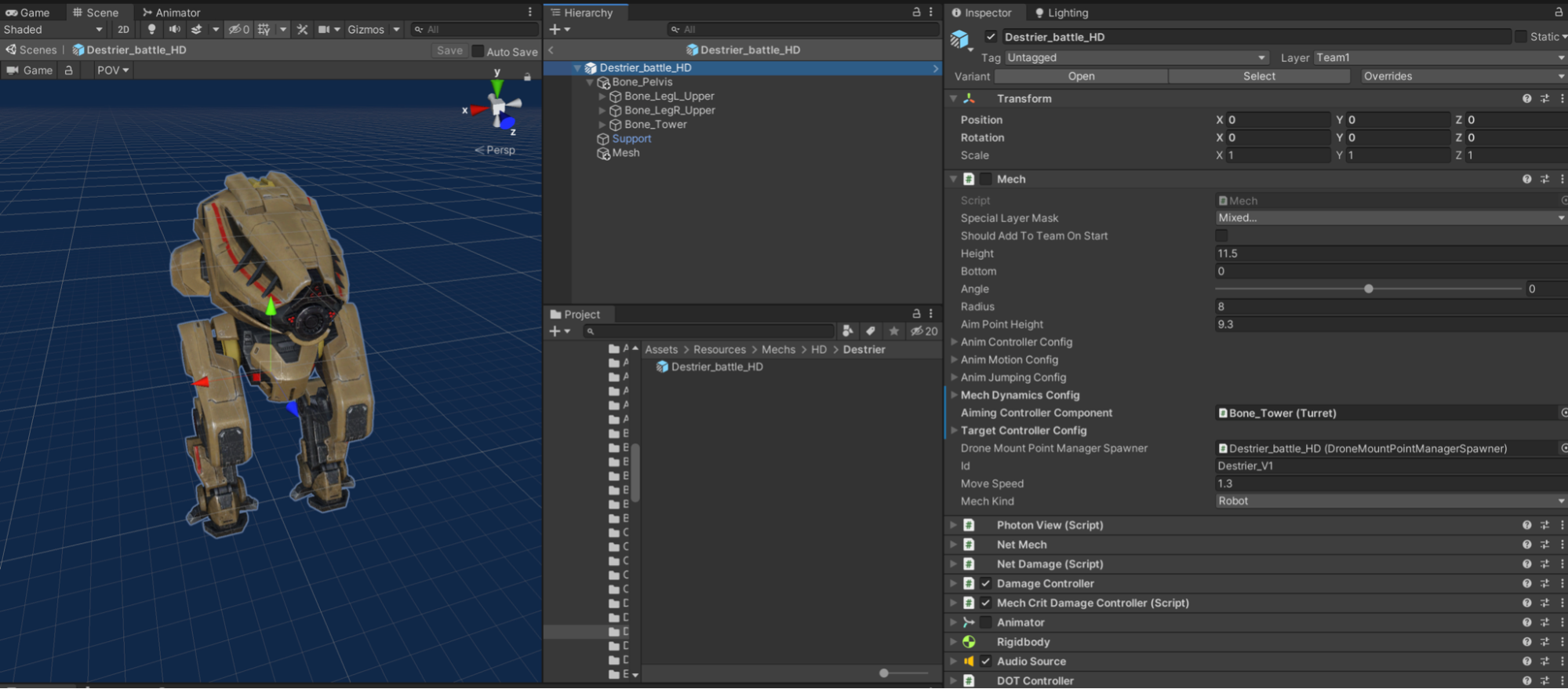 Геймдизайнер вручную донастраивает ремастер-префаб: указывает новые ссылки на точки креплений пушек, VFX и т. д. На выходе этого этапа мы имеем один полноценный префаб-вариант для ремастер-качества.