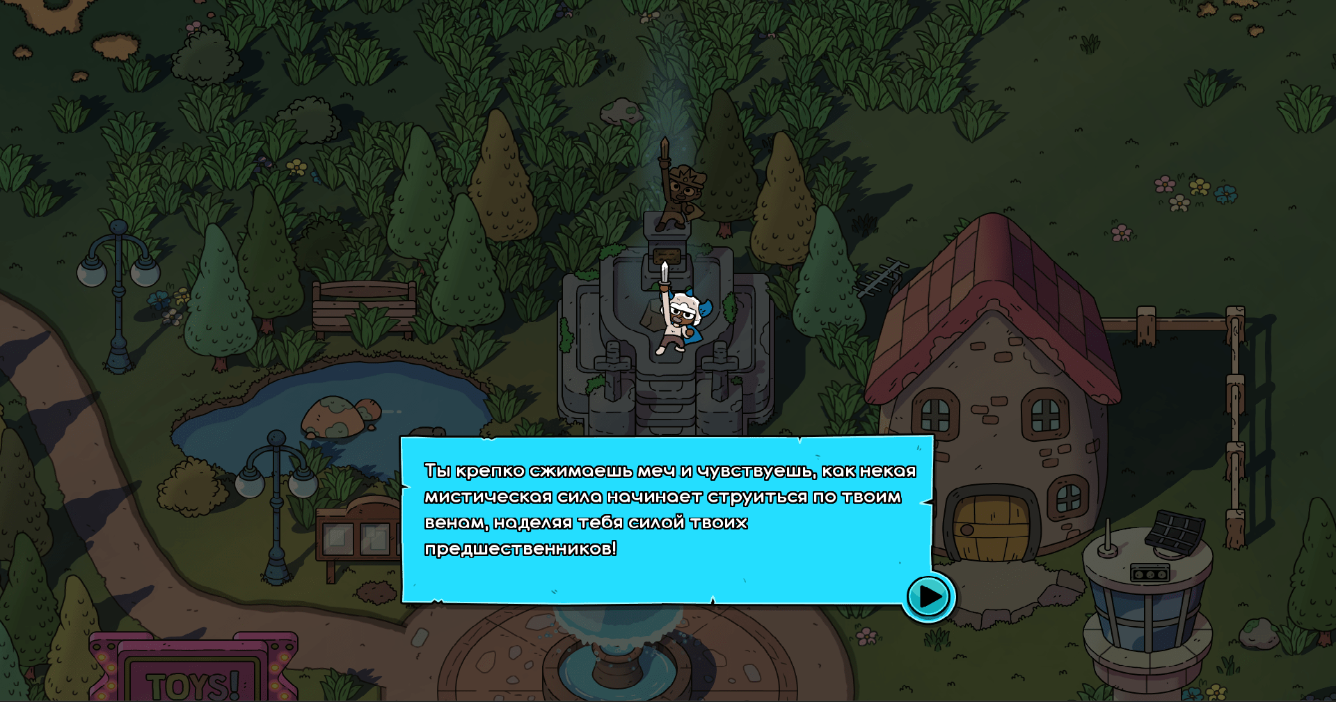 В игре миленький стиль и нет крови и ругани, а потому тут можно отдохнуть и насладиться милым ВЫРЕЗАНИЕМ И РАЗРУШЕНИЕМ ВСЕГО ЖИВОГО ВО СЛАВУ ДИТТО И БОГОВ ЭТОГО МИРА. Главный герой это безымянный житель этого мира, который в один момент получает меч Дитто — воплощения того самого героя, который по классике появляется раз в сто лет, чтобы спасти людей от напасти. Мы подбираем меч и сразу в бой!