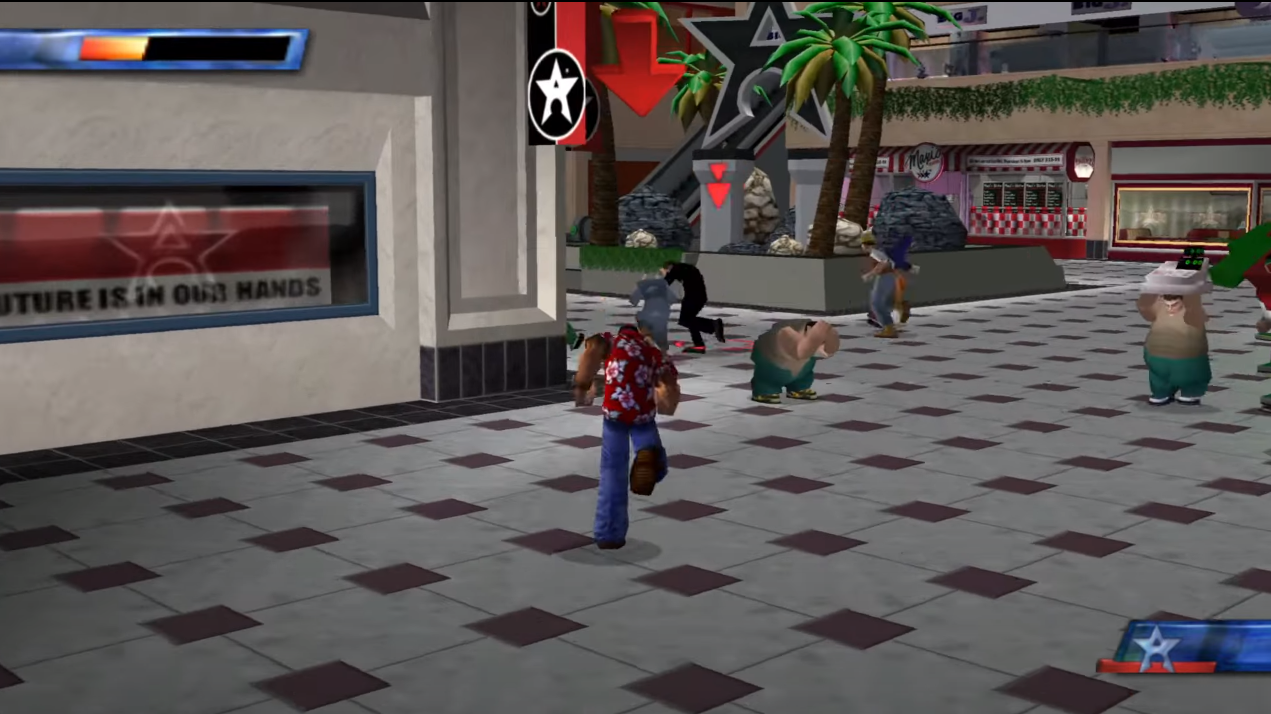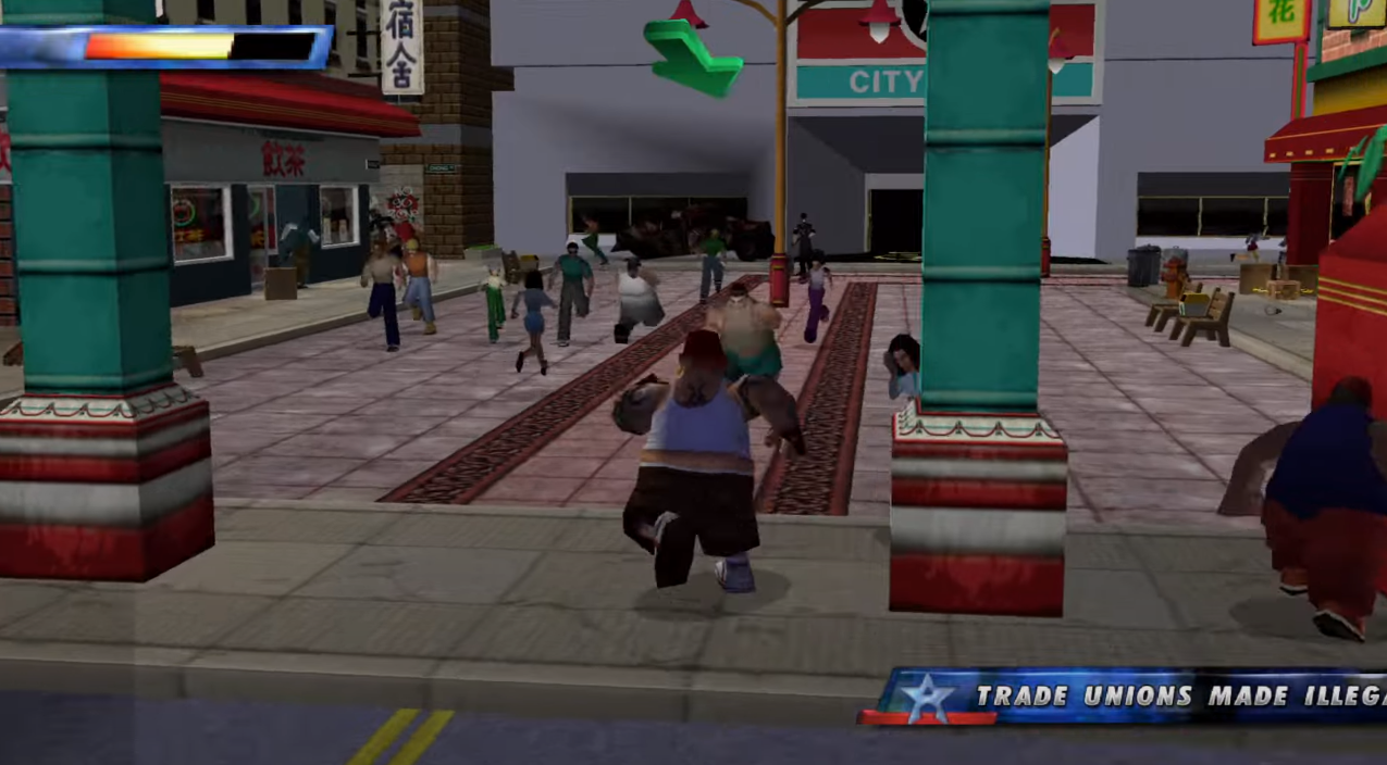 Даже несмотря на то, что я поиграл в State of Emergency на выходе, в далеком 2003-ем, вся эта толпа не впечатляла. Зато впечатляла сама возможность отрендерить такое кол-во персонажей одновременно!